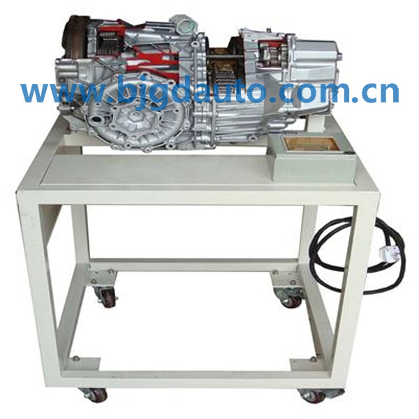 設(shè)備采用自動(dòng)變速箱總成實(shí)物制作,變速箱的關(guān)鍵部位加以開(kāi)放式解剖,解剖剖面進(jìn)行精細(xì)分色。配置射燈使液力變矩器、輸入輸出軸、太陽(yáng)輪、行星齒輪、電磁閥等內(nèi)部結(jié)構(gòu)清晰可見(jiàn)。利用本實(shí)驗(yàn)臺(tái)可以使學(xué)員輕松、真實(shí)地了解變速箱機(jī)械系統(tǒng)的組成、各部件的外形、各機(jī)構(gòu)彼此之間的連接關(guān)系,加深學(xué)生對(duì)變速箱機(jī)械系統(tǒng)組成和工作原理的理解,幫助學(xué)生理解抽象的控制理論。