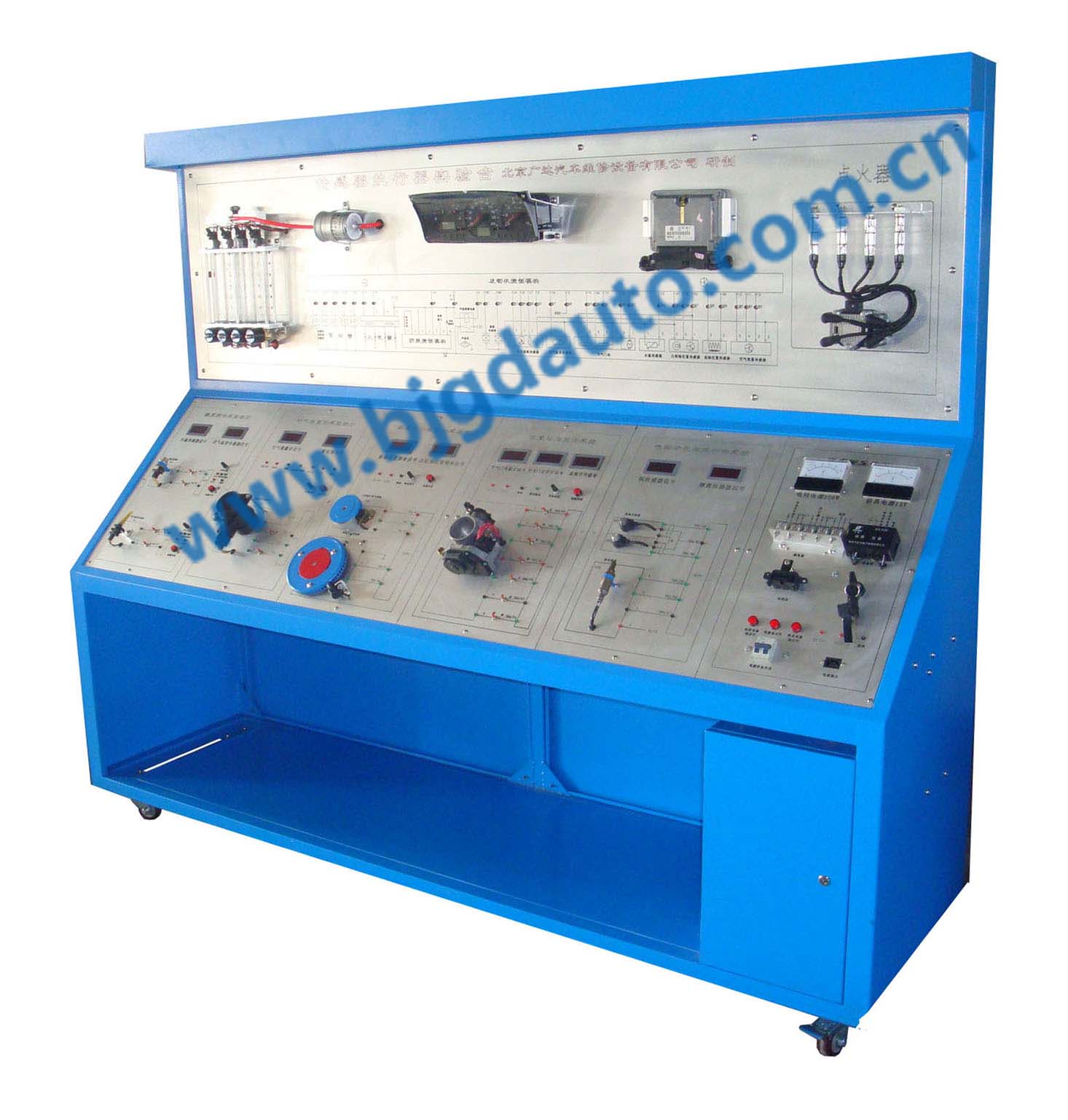 設(shè)備采用原車傳感器與執(zhí)行器部件及相關(guān)器件組成,系統(tǒng)采用模塊化配置,包括:溫度型傳感器部分、空氣流量傳感器部分、速度與加速度傳感器部分、位置與角度傳感器部分、氣體濃度與振動(dòng)傳感器部分、電源配置部分以及發(fā)動(dòng)機(jī)控制部分等七個(gè)模塊組成。各個(gè)模塊均以汽車傳感器和執(zhí)行器為中心,并配置了較為完整的輔助教學(xué)系統(tǒng)。輔助教學(xué)系統(tǒng)包括電路圖、數(shù)顯表、檢測(cè)端口、參數(shù)模擬裝置、轉(zhuǎn)速信號(hào)觸發(fā)機(jī)構(gòu)、信號(hào)調(diào)整機(jī)構(gòu)、故障設(shè)置系統(tǒng)等。各模塊即可獨(dú)立工作,也可以合并系統(tǒng)工作。