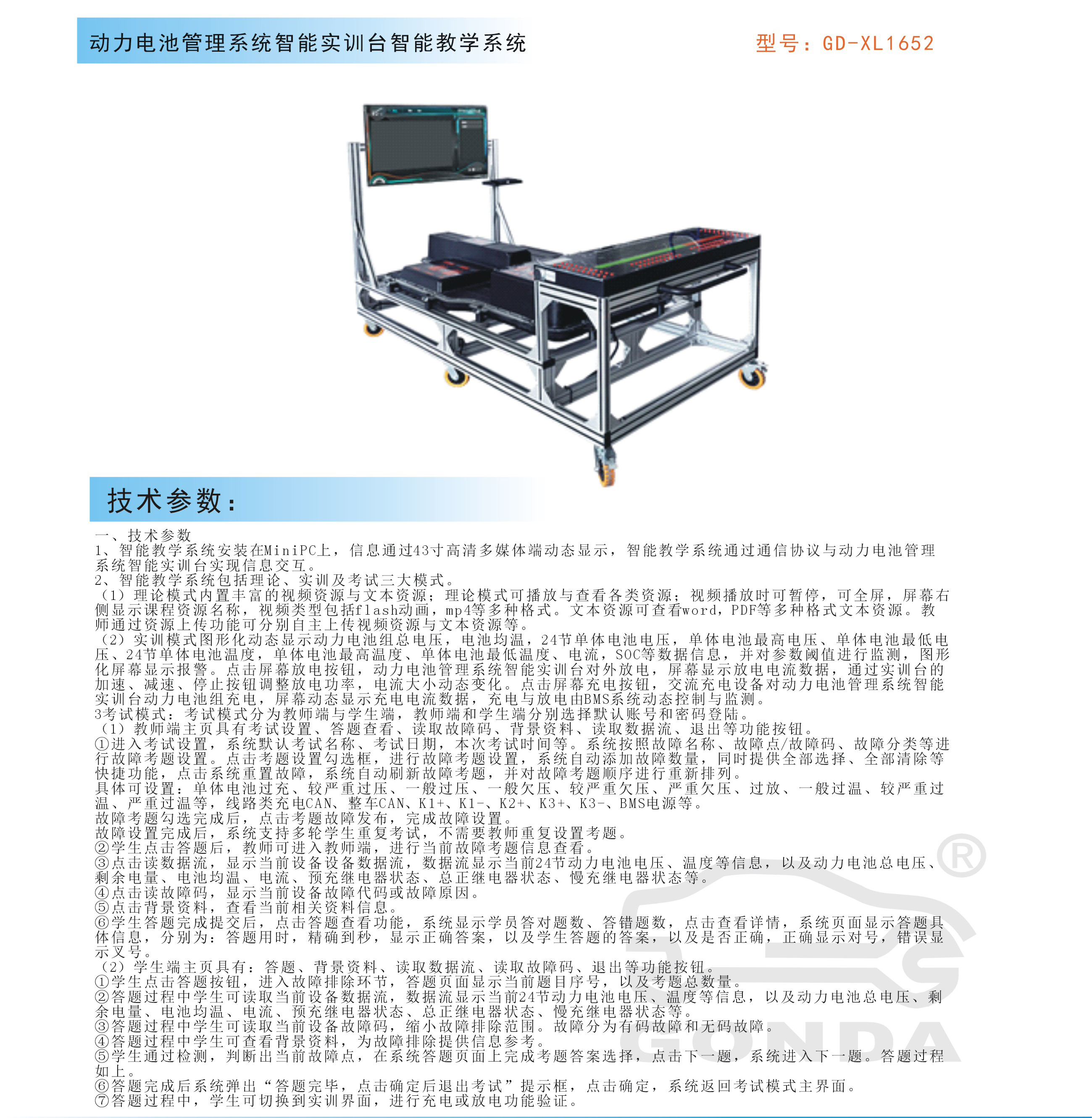 產(chǎn)品名稱:新能源汽車動力電池管理系統(tǒng)智能實訓(xùn)臺智能教
