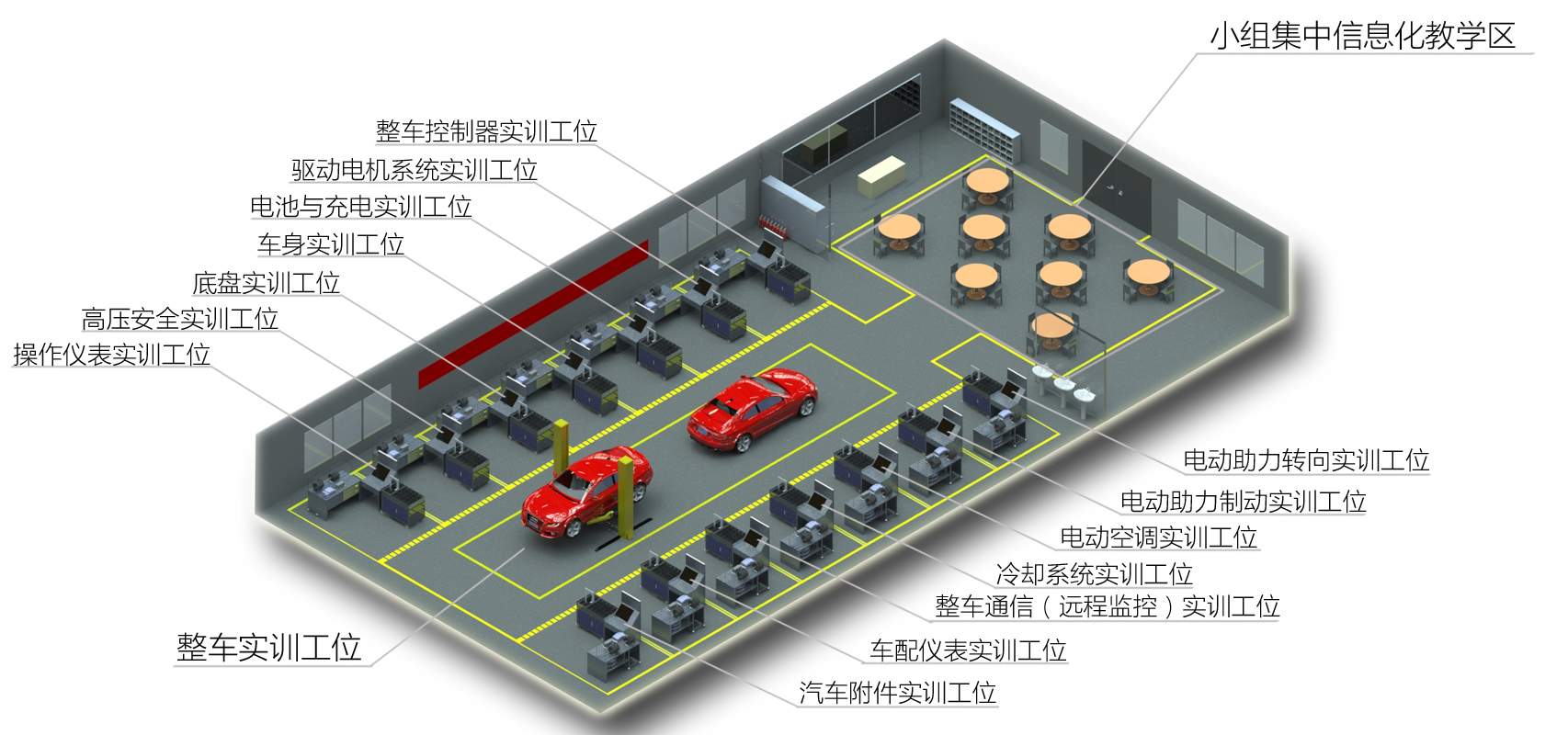 流水線型BEV實(shí)訓(xùn)系統(tǒng)(Flow Lined Vocational PracticeSystem of BEV)簡(jiǎn)稱FLVPS,由總計(jì)13個(gè)實(shí)訓(xùn)工位構(gòu)成。FLVPS系統(tǒng)構(gòu)成了職業(yè)教育及應(yīng)用型本科教育新能源電動(dòng)汽車技術(shù)專業(yè)或車輛工程類專業(yè)新能源汽車技術(shù)方向的綜合實(shí)訓(xùn)所需手段的綜合解決方案,為學(xué)校提供實(shí)訓(xùn)所需軟件硬件一體化的系統(tǒng)完整的教育技術(shù)平臺(tái)。系統(tǒng)按德國(guó)行動(dòng)導(dǎo)向的職業(yè)教育思想和理念開發(fā)設(shè)計(jì),支撐以項(xiàng)目教學(xué)方法為主、引導(dǎo)文、案例和角色扮演為輔的行動(dòng)導(dǎo)向教學(xué)方法,突出“做中學(xué)”和“學(xué)中做”,不是在現(xiàn)成設(shè)備上學(xué)習(xí),而是在做設(shè)備的過(guò)程中學(xué)習(xí)。系統(tǒng)依據(jù)電動(dòng)汽車維修職業(yè)行動(dòng)領(lǐng)域決定的對(duì)知識(shí)和技能的需求,支持開展構(gòu)造認(rèn)知、原理研討、拆裝操作、運(yùn)行操作、檢測(cè)操作、維修操作、保險(xiǎn)定損評(píng)定等實(shí)訓(xùn)的開展。