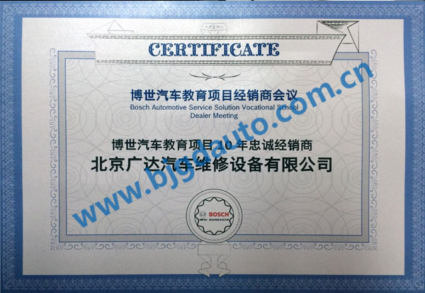 我公司榮獲“博世汽車教育項(xiàng)目十年忠誠經(jīng)銷商